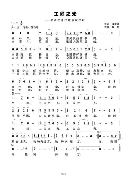 校歌《工匠之光》以新时代“工匠精神”为内核灵魂,巧妙融合秦风汉韵的深厚文化底蕴与现代职业教育的蓬勃朝气。歌词立意高远、恢弘大气,深情讴歌了交通人的使命与担当;旋律优美流畅、振奋人心,兼具民族韵味与时代流行特征,易于传唱。