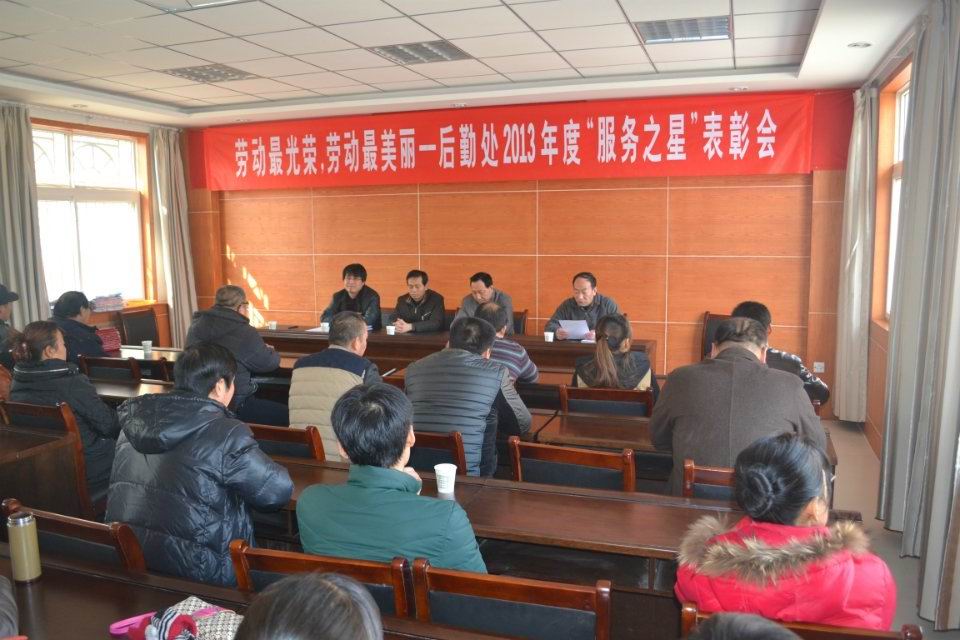 为了鼓励先进,树立典型,激发广大后勤员工的敬业精神和服务热情,努力践行“要服务、找后勤”的服务理念。元月9日下午,劳动最光荣,劳动最美丽—后勤处2013年度“服务之星”表彰会在综办楼会议室举行,院长杜建忠、纪委书记张世西、工会主席孟祥斌到会参加。
