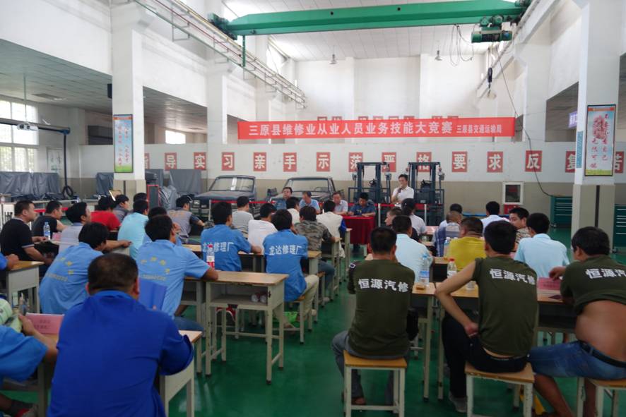 2014年7月22日在我院汽车实训室举办2014年三原县汽车维修企业职工业务技能竞赛。本次竞赛活动继学院与三原县交通局合作办学,开展维修企业员工技术培训后举办的一次全县性大规模的技能大赛,对提高职工素质,激发全县职工学技术、赛技能、比能力、强素质起到了积极促进作用。