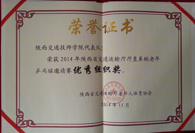 2014年11月12、13日,在陕西省交通运输厅厅直系统老年乒乓球邀请赛中我院职工代表获女子组个人第三名,学院获优秀组织奖。