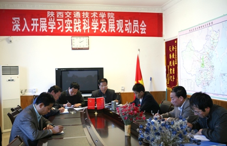 图为:十月十三日晚八点陕西交通技术学院 中层以上领导干部学习实践科学发展观动员会