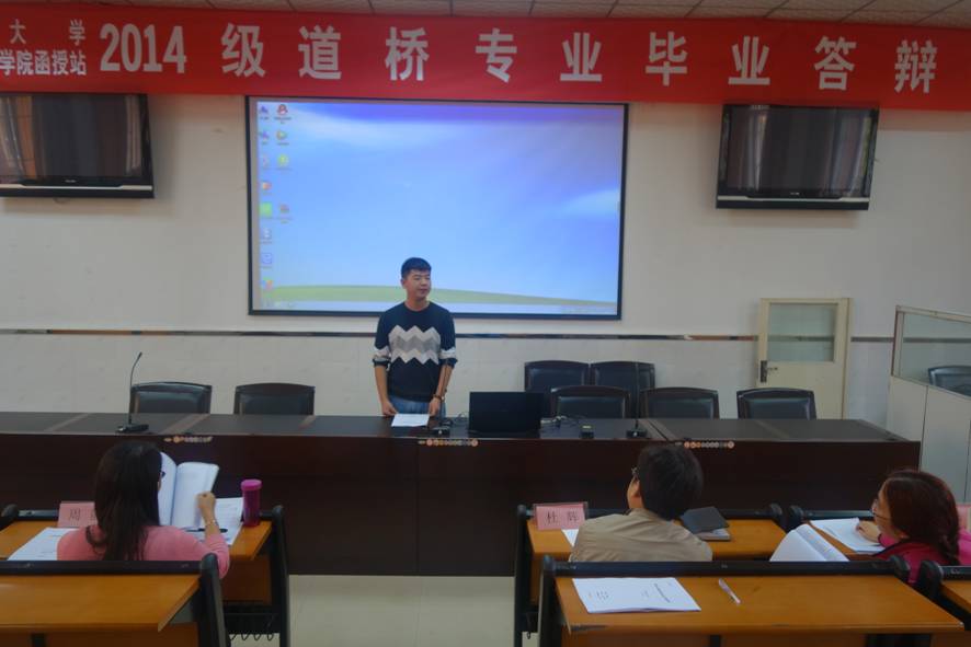 根据本学期教学安排,9月30日,公路系对2014级道路桥梁工程技术专业学生进行毕业答辩。每位答辩同学分别由四位评委老师进行现场提问并打分。