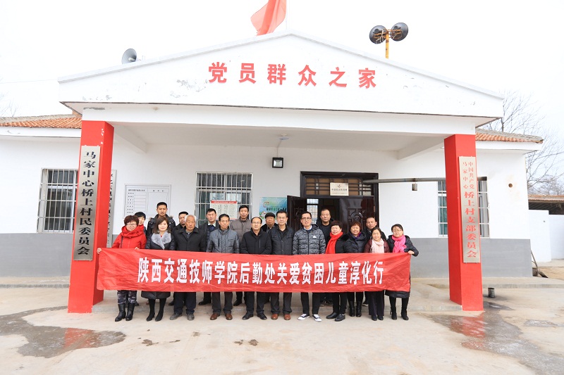 2018年1月18日,学院工会主席孟祥斌带领后勤处职工赴淳化县马家中心桥上村进行招生宣传及关爱“建档立卡”留守贫困儿童活动。本次活动,后勤处通过淳化县妇联对接联系,对桥上村贫困家庭14名留守儿童进行了爱心慰问,并对该村在读的初中、高中学生家长进行了我院招生政策宣讲。