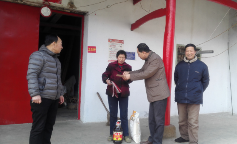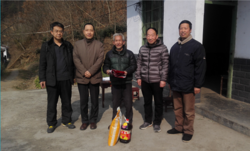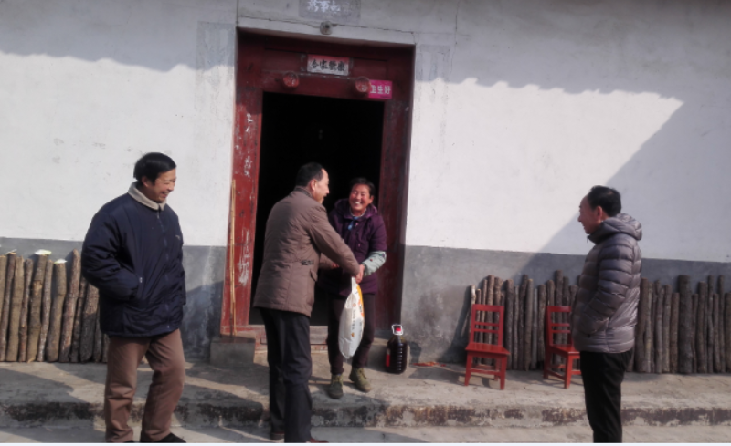 杜院长他们在村干部和驻村工作队员带领下,首先来到因疾突然去世勤恳认真的村干部老陈家里,向家属表达了学院的问候和关怀。在调研过程中,杜院长与困难党员和结对帮扶的贫困户亲切地交谈,详细了解他们存在的实际困难和发展意愿。在慰问过程中,给每一户送去大米、食用油等生活用品以及春联和慰问金,把爱送到了老党员和贫困户心中,让他们在这个严寒的季节感受到融融暖意。并转达了学院广大教职员工对他们的新年祝福,同时鼓励他们在党的好政策帮扶下克服困难,在新的一年,自力更生搞好生产,争取早日脱贫奔小康。