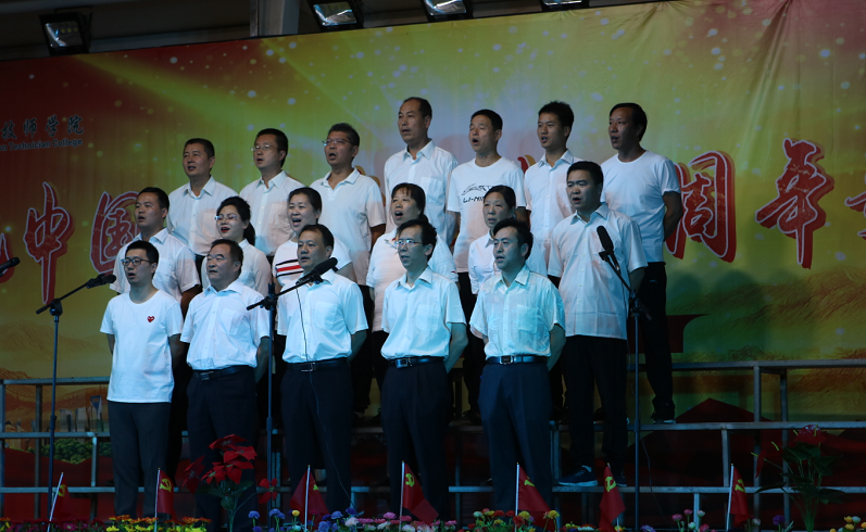 学生合唱《我爱你中国》、《追梦赤子心》、《歌唱祖国》、《保卫黄河》、《强军战歌》等,抒发爱国情怀。