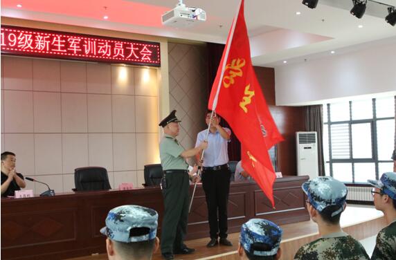 张自平副院长向军训营授旗,高增强教官代表军训营接旗