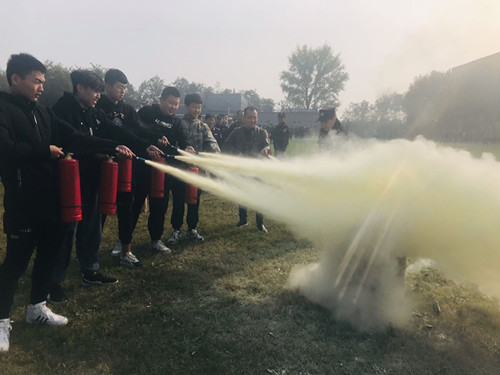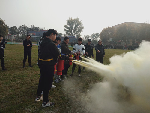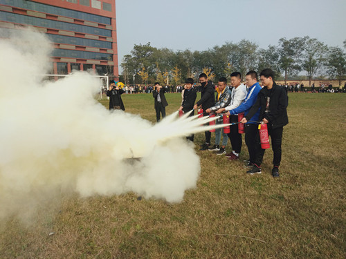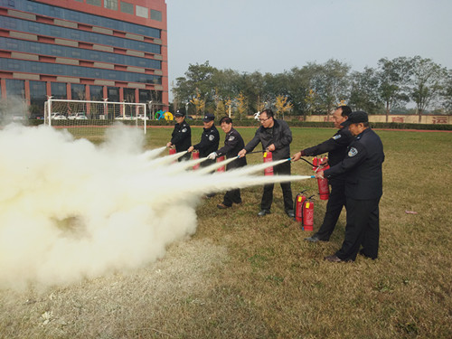 保卫处指派专人对参会的一千多师生进行了消防安全知识宣讲及讲授灭火器的正确使用方法,火警119报警,火场逃生技巧,随后在教官的指挥下,有序的进行了消防灭火实战演练,包括全体学生、各部门义务消防队员及部分教职员工1000多人参加演练活动,80多人上场演练,使用90具灭火器。