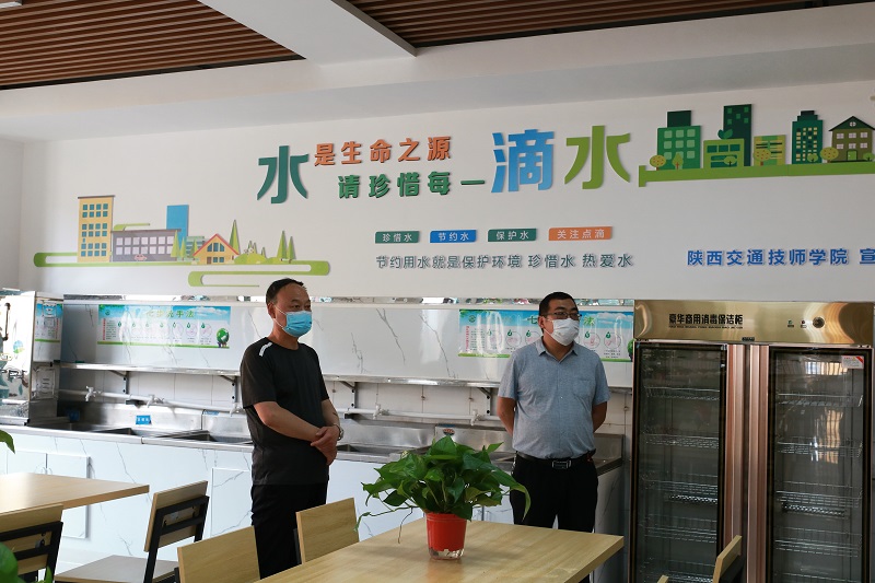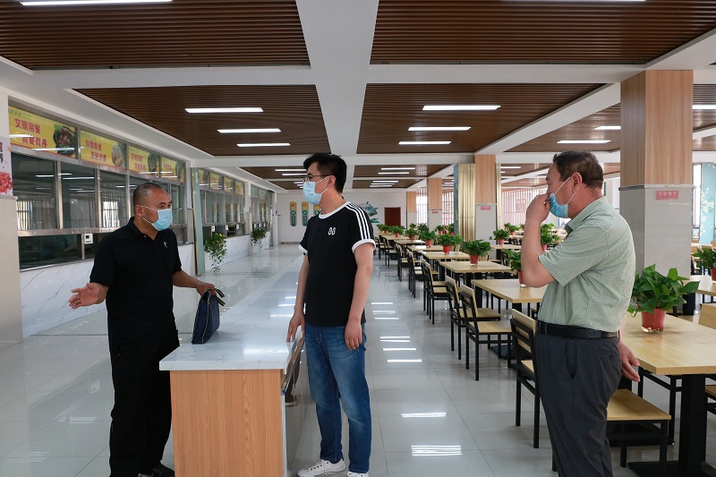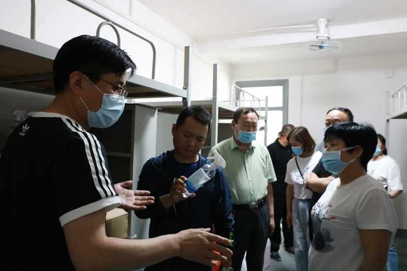 检查组从学院大门开始,严格按照《泾河新城各类学校开学准备工作验收标准》,对我院门岗、学生食堂、学生公寓、隔离室、物资储备室、教室等重点场所进行了实地查看。检查过程中,董鹏向工作组详细介绍各场所的管控、测温、消杀、宣传等防控措施以及学生返校进校流程、师生情况摸排、防疫物资准备等情况。