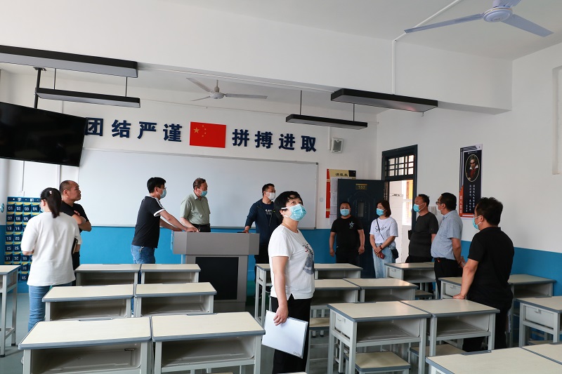 6月2日,由泾河新城教育、卫体、疾控、食药监、公安、土地、社区等单位组成的疫情联防联控工作组来我院检查指导开学准备工作。我院副院长苏东阳、院长助理董鹏、保卫处长杨炜、学生处长封胜利等陪同检查。