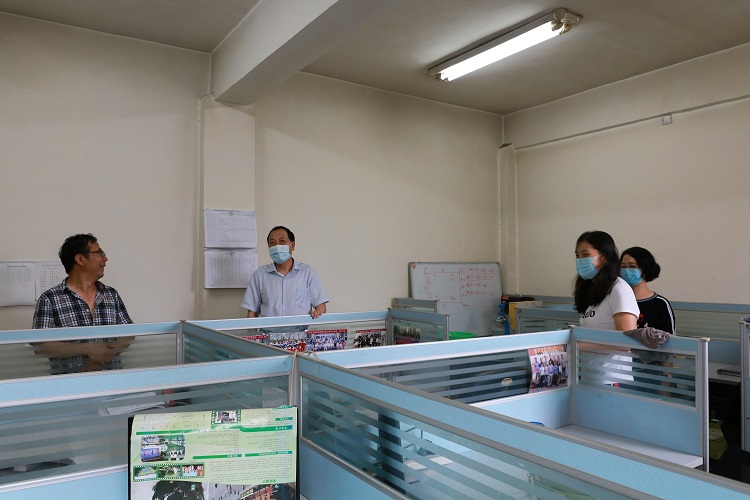 杜建忠院长每到一个部门,首先关心慰问大家及家人的身体健康,代表学院对老师们在疫情防控期间的在线教学工作、疫情防控工作、后勤服务保障等工作的辛勤付出表示感谢!并叮嘱大家在保护好自身健康安全的同时,妥善工作。检查过程中,杜院长一一听取各部门负责人的详细汇报,并现场查看教工在岗情况和疫情防控工作落实情况。