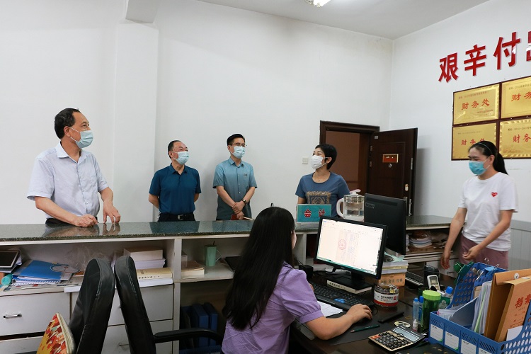 6月29日,我院全体教职员工伴着清凉的小雨,伴着渴望,如期返回校园。学院党委书记、院长杜建忠开学首日深入各部门检查指导疫情防控和开学工作。纪委书记张世西、院长助理董鹏陪同。