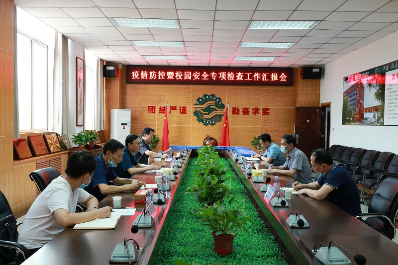 检查组进入校园后,双方在综合楼会议室召开疫情防控暨校园安全工作会议。孟祥斌主席代表学院首先欢迎专家组一行来我院检查指导。他分别从我院疫情防控和校园安全整体情况、师生基本情况、开学前准备情况、开学后具体工作情况四大方面以及疫情防控隔离室、物资储备、餐饮安全、公寓管理、学生上课、安全保障等六个专项予以汇报。汇报结束后,专家组根据汇报材料以及本次专项检查细则指标,详细查阅我院疫情防控以来的机制建立、师生健康档案、制度建立、消杀保障、食堂管理、校园安全管理等资料。