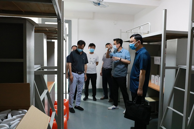 随后,专家组实际查看了我院疫情防控物质储备室、隔离室、师生餐厅、学生宿舍、公路专业教学实训室等场所。院长助理、疫情防控办主任董鹏分别就各场所的防控设施保障、人员配置、工作流程、工作落实等情况予以详细介绍。