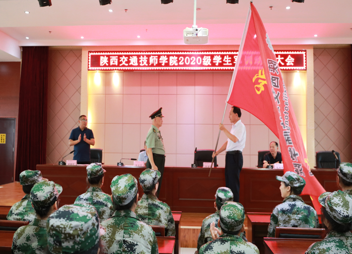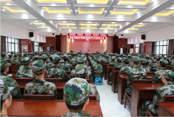 8月17日上午9点30分,伴随着庄严的国歌声,陕西交通技师学院2020级新生军训动员大会在交通客运服务实训楼会议室隆重举行。党委书记、院长杜建忠、副院长张自平、毛兴中,军事训练营营长高增强以及全体教官和参训新生参加了动员大会。大会由学生处处长封胜利主持。