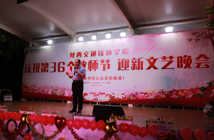 副院长毛兴中代表学院党委在晚会上致辞,希望同学们尽快融入到校园文化之中,努力践行“团结、严谨、勤奋、求实”的院训,传承和发扬崇德尚技的精神,不断进步,超越自我,积极参与到陕西交通技师学院各项事业的建设中,共同为学院的发展建设贡献自己的一份力量。