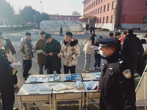 2020年12月14日下午,泾河新城公安分局刑警大队罗警官一行4人,在学院保卫处,学生处的协作下,在学院实验楼前,进行了以《守护青春》为主题的防诈骗宣传图板展。