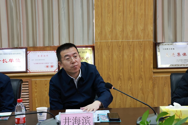 参观完毕,调研组在学院会议室召开了调研座谈会。会上,党委书记、院长杜建忠从学院的发展历史、基本情况、办学理念、办学特色、学制教育、职业培训、就业成才等方面作了简要汇报。在汇报过程中,王晓君副司长对学院近年来取得成绩给予充分的肯定和赞许。她指出,陕西交通技师学院作为省里非常有代表性的技工院校,办学历史悠久,办学特色鲜明,始终坚守和传承技工教育本色,可谓负重致远 ,不忘初心。希望学院继续发挥示范院校引领带头作用,不断推进技工教育的良好发展。
