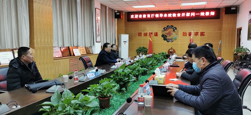 党委书记、院长杜建忠就学院一年来的总体工作简要进行了汇报。王海波副厅长听取后对我院一年来的发展和取得成绩赞赏有加。他感慨的说:与我省同类中职学校相比,我院校园精致美丽、专业建设特色鲜明、管理规范精细、班子团结奋进。每次来我院都很高兴,很振奋,很欣慰!厅党组将会一如既往支持学院建设发展,努力为教师育人工作创造良好环境。