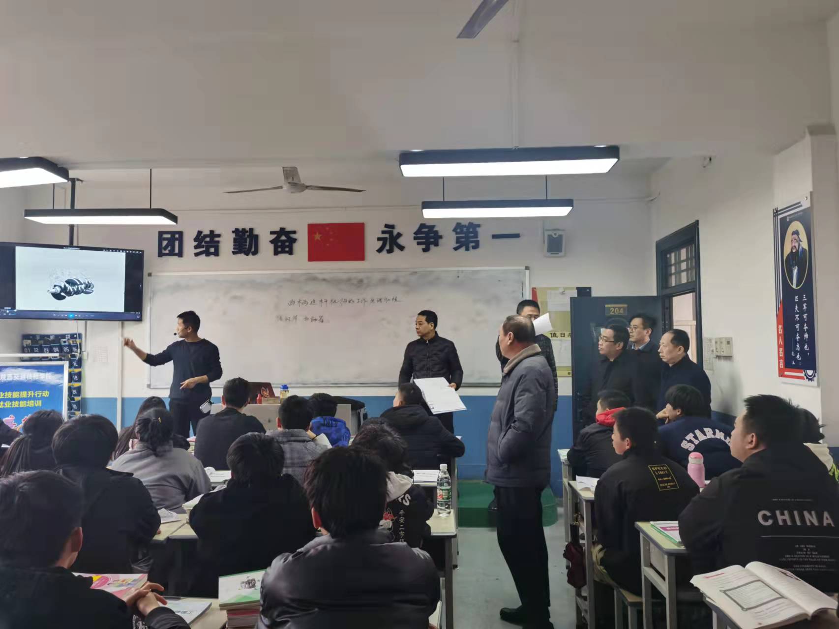 12月15日下午,由技能提升办公室组织,副院长苏东阳、毛兴中带队,各相关部门参加,对全院17个技能提升培训班进行了突击检查。