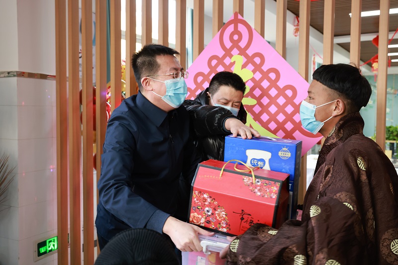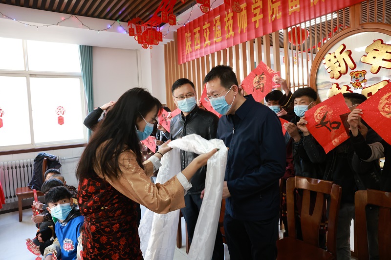 金牛辞岁寒风去,瑞虎迎春喜气来。1月31日除夕,陕西交通技师学院内张灯结彩、欢声笑语、喜气洋洋,处处洋溢着新年的喜庆气氛。省人社厅党组成员、副厅长井海滨,省人社厅技校指导中心主任武争鹏、西安市人社局职业能力建设处处长宋锁平一行来院与春节留校的西藏阿里学生一起过大年,共迎壬寅虎年新春佳节。学院党委书记、院长杜建忠等班子成员陪同参加活动。