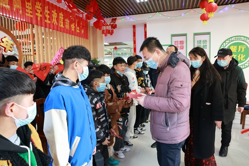 饺子包好了,热气腾腾的年夜饭端上来了。开饭前,井厅长为每位同学送上了“新年大礼包”和“大红包”。西藏的央宗卓玛老师向各位领导献上了洁白的哈达;武争鹏主任代表省厅对同学们表示节日的慰问;党委书记、院长杜建忠代表学院对井海滨副厅长一行表示感谢并发表致辞。