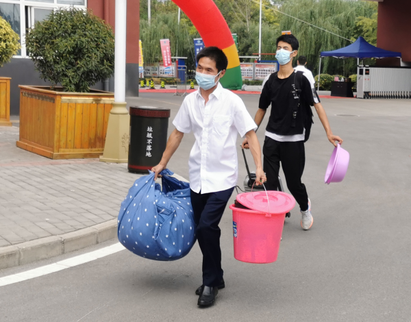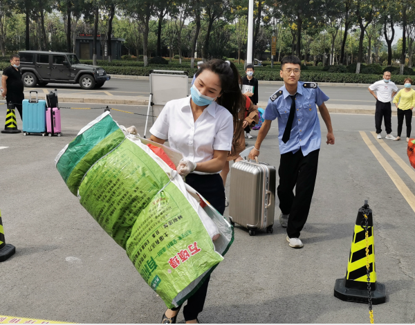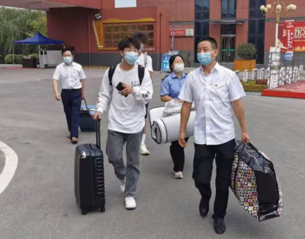 迎接学生服务组的老师,共有40名,其中34名老师来自教务处党支部。党员干部发挥先进模范作用,和老师们一道,率先垂范,不怕苦、不怕累地帮助新生搬运行李,上楼下楼,一趟又一趟,顾不上喝口水,顾不上歇息一下,只要学生需要,他们就出现在学生身边……他们,是学生网课里一个个熟悉而又沙哑的声音,现在当起了新生的“家长”,让这些初次远离家乡的孩子们,在这个陌生的校园体会到了家一般温暖。