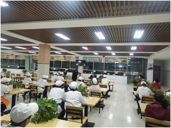 最后,后勤处刘亮老师再次强调要求各食堂负责人一是加强对员工日常工作安排进行监督和培训,增强员工安全意识。二是要做到思想上重视、行动上跟紧,制度上执行、专人负责、责任到人。希望全体工作人员要牢固树立安全意识,杜绝一切安全事故,保证学院餐饮中心及生活超市的食品、水、电、气及消防的安全,为全院师生做好生活服务。