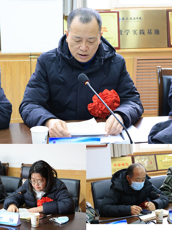 在大会交流发言阶段,刘增理、于娇、董小健分别从班主任日常工作、学生管理教育方式方法、疫情防控等方面,向与会领导和同事做了工作汇报和经验分享。院党办主任侯玉印谈了自己的参会体会和感想,认为今天的会议既是两个支部和几个部门的年度工作总结交流会,又是支部和部门向院党委的年度工作汇报会,会议准备充分、组织精细,特别是董鹏同志分管学管、培训工作以来,工作起点高、力度大、成效好,无论在支部党建、招生、学管、培训诸方面,都给学院其他支部和部门起到了示范引领作用。党委委员副院长董鹏对分管几个部门年度工作给予充分肯定,特别是几位部门负责同志,勤勤恳恳、率先垂范,在今年的招生宣传、学生管理、疫情防控、培训工作中,识大体顾大局,组织带领部门同志做了大量而有效的工作,取得了较好的成绩,在此向大家以及部门同志表示衷心感谢。他同时指出各个部门的工作存在问题和不足,对下一步和来年的部门工作提出明确的思路和具体要求。