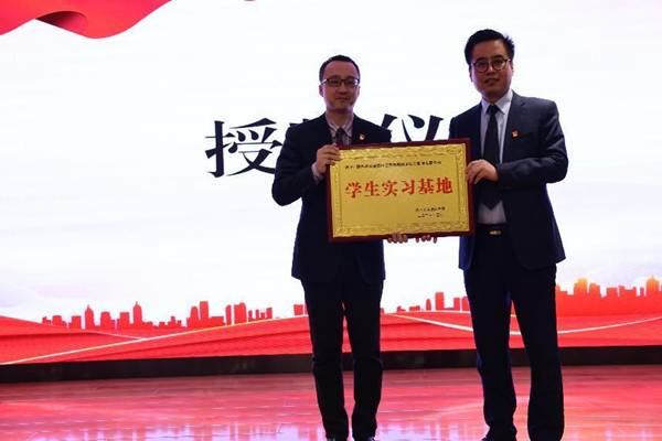 学院党委书记、院长杜建忠致感谢词,他认为本次校企实训、人才输送基地合建,对双方具有重要意义。一方面,企业为学生提供实习平台,为高水平应用型人才培养提供有力支撑;另一方面,学院为企业提供人才输送渠道,推动企业健康发展,实现校企互动和双赢。