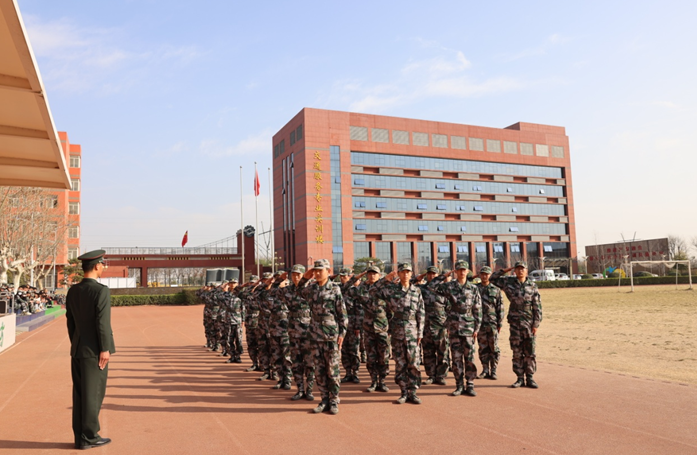 党委书记、院长杜建忠在教官的陪同下从队伍前走过,亲切地向同学们挥手问候:“同学们好!”“院长好!”“同学们辛苦了!”“为校争光!”一句句问候,饱含着领导的深切期望;一声声回答,展示着青春学子奋勇拼搏、舍我其谁的勇气和自信。