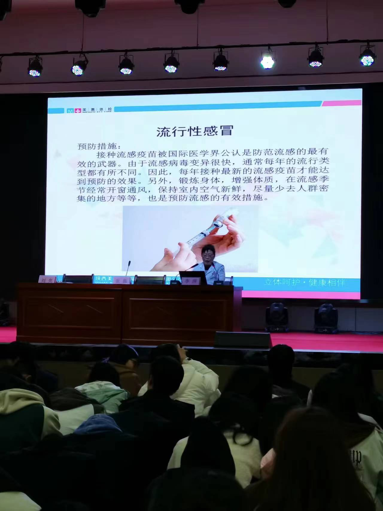 李萍分别就如何正确认识当前新冠疫情形势及春季传染病的概念、传染病在春季多发的原因、校园常见传染病的种类以及预防措施等四大方面进行了专业详细的讲解。她重点向学生科普了流行性感冒、水痘、肺结核、流行性腮腺炎、诺如病毒五类学校常见易发传染疾病的预防,倡导同学们要充分了解常见传染病的知识。