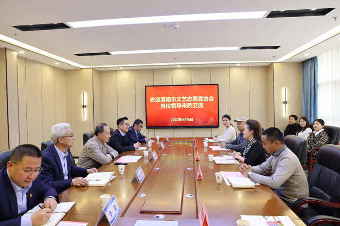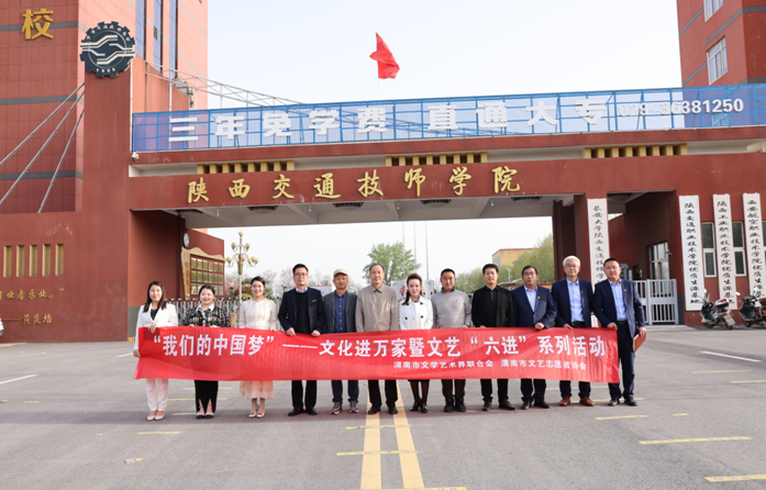 4月6日下午,渭南市文艺志愿者协会主席梁君莉一行走进陕西交通技师学院,围绕“校园文化建设、学生文艺素养提升”,双方进行了深入交流与探讨,达成了初步共识。学院党委书记、院长杜建忠,党委委员、副院长董鹏以及相关部门负责人陪同梁君莉一行,参观校园开展座谈交流。