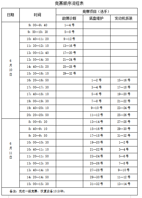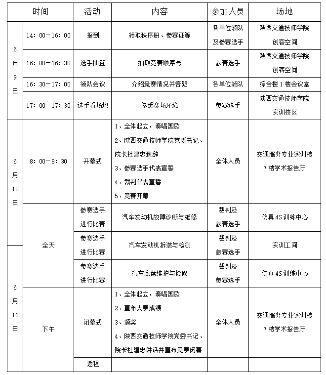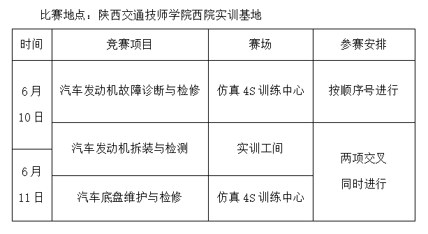 第二届全国技能大赛陕西省选拔赛 汽车维修 竞赛安排