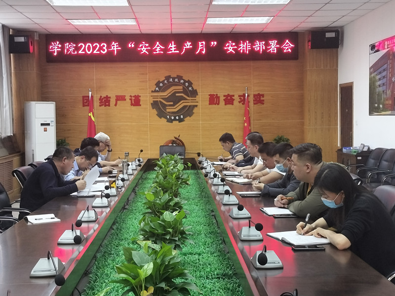 为全面落实习近平总书记关于应急管理、安全生产、防疫减灾等重要指示,结合主题教育活动入脑入心,见行见效,不断加强全院师生安全教育和禁毒宣传,增强思想自觉,责任自觉,行动自觉,强化管理、消除隐患,确保校园安全稳定,师生平安健康。6月6日下午,学院 召开“安全生产月及禁毒宣传月”活动安排部署会,学院党委委员副院长杜辉、院工会主席、安委会主任张振及各部门负责同志参加会议,会议由副院长杜辉主持。