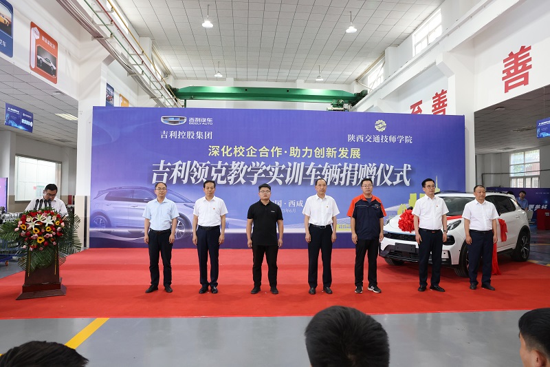 6月15日下午,“吉利领克教学实训车辆捐赠仪式”在我院汽车专业实训基地隆重举行。学院党委书记、院长杜建忠,党委副书记、纪委书记孟祥斌,党委委员副院长董鹏、张勇,吉利控股集团西安公司质量部品质检验经理刘冬至、吉利集团校企合作西北区域经理王凯等出席此次活动。活动仪式由学生处处长封胜利主持。