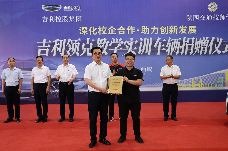 会上,吉利汽车集团校企合作西北区域经理王凯向学院授予“优秀协同育人伙伴荣誉牌”;吉利控股集团西安公司质量部品质检验经理刘冬至向学院捐赠吉利领克实训汽车。