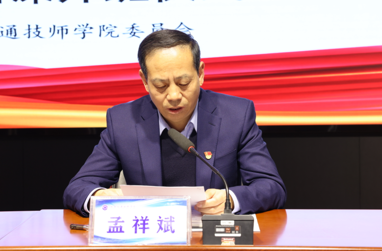 党委副书记、纪委书记孟祥斌致辞,他向本年度的入团积极分子表示祝贺,并指出,陕西交通技师学院团校的成立,能够更好发挥青年团员们的先进性作用,厚植爱国主义情怀,培养奋斗精神,希望学校的团员们能够扣好“人生第一粒扣子”,增强“四个意识”,坚定“四个自信”,做到“两个维护”,努力成为德智体美劳全面发展的社会主义建设者和接班人。