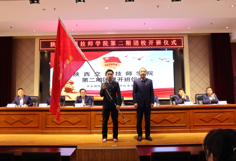 在师生的共同见证下,党委书记、院长杜建忠向本期团校授旗,标志着陕西交通技师学院第二期团校正式开班。