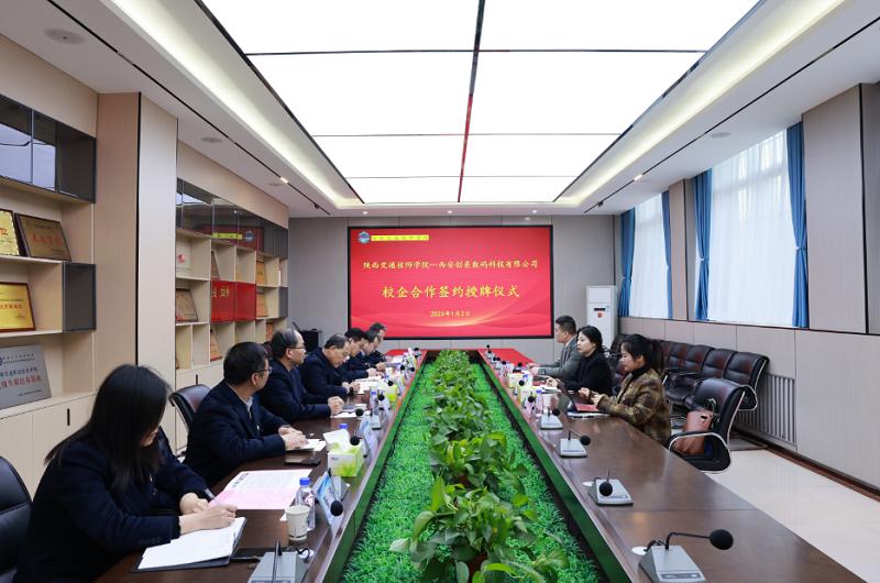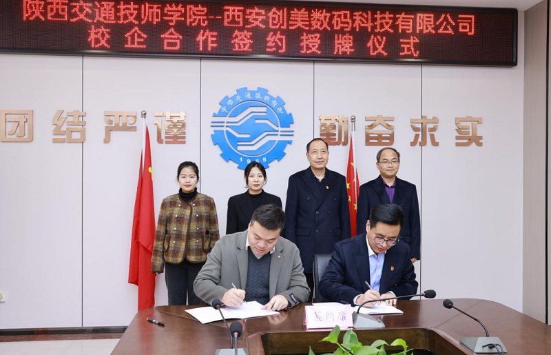 为充分发挥职业教育为社会、行业和企业服务的功能,为企业培养更多高素质、高技能的应用型人才,为学生实习、实训提供更大空间。1月2日,学院与西安创美数码科技有限公司在综合楼会议室举行校企合作签约授牌仪式。出席签约仪式的有西安创美数码科技有限公司总经理符馨、西安创美数码科技有限公司市场部总监张斌、西安创美数码科技有限公司西北大区经理郑瑾,我院党委书记、院长杜建忠、副院长董鹏、副院长张勇、副院长杜辉、公路系主任王景峰、图电中心主任赵鑫、培训处副处长张洁。仪式由杜辉主持。