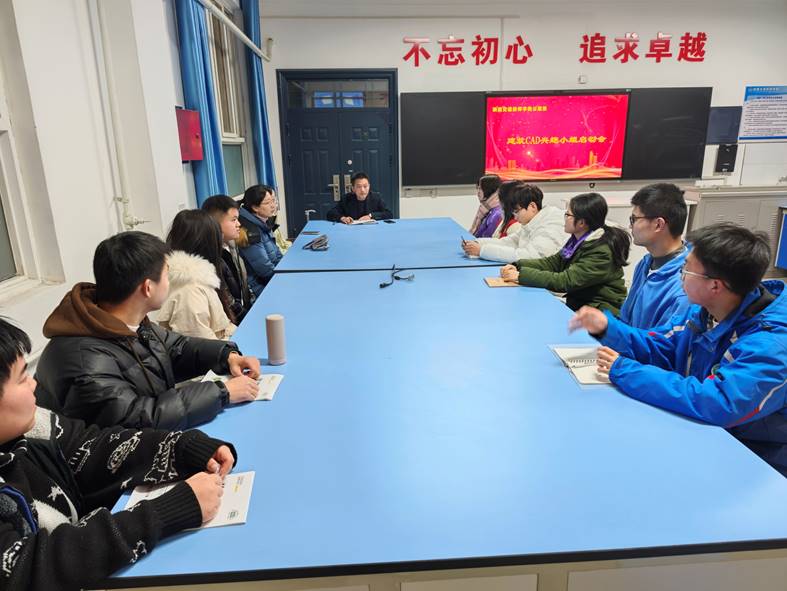 为更好的活跃校园文化生活,提高同学们的工程制图操作技能,增强同学们的学习兴趣。12月17日下午,公路系在实验楼工学一体化教室召开建筑CAD兴趣小组启动会。参与兴趣小组的学生主要由识图老师推荐并结合自愿参与产生,共有来自路桥专业12名学生。
