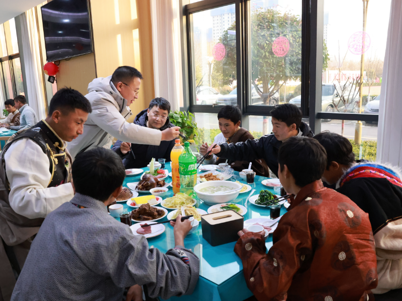 元春始风华,万象启新朝;汉藏一家亲,共度幸福年。1月28日大年三十,陕西交通技师学院党委书记、院长杜建忠带领班子成员、学生处管理人员与留校过年的西藏阿里班师生一起看春晚、包饺子、吃年团圆饭、欢歌笑语喜迎2025年乙巳蛇年。藏族学生身穿节日盛装,为领导献哈达,表达新年的美好祝愿。师生亲切交流学习和生活情况,寄语殷殷、祝福声声,其乐融融。