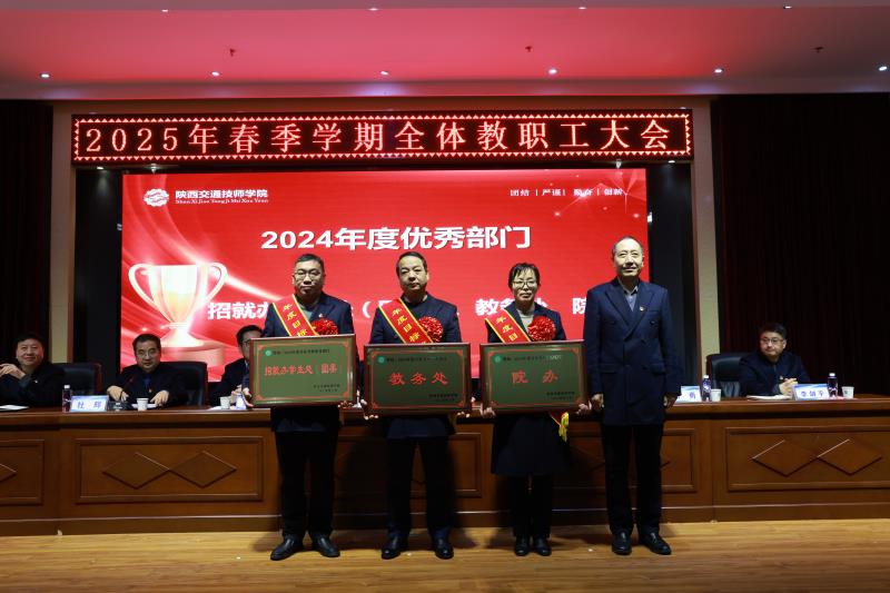 大会分别对招就办学生处(团委)、教务处、院办等三个2024年度目标考核优秀部门,汽车系、后勤处两个2024年度安全考核优秀部门,2023年度厅属中职学院优秀领导干部董鹏和“陕西产业工匠人才”靳王宾进行了表彰。