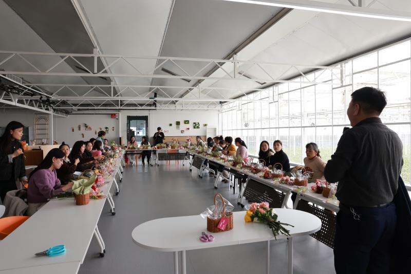 参观结束后,精彩纷呈的花艺体验环节正式登场。专业的花艺老师亲临现场,为大家讲解花艺知识和插花技巧。在老师的指导下,女教工们充分发挥自己的创意和审美,精心挑选花材,巧妙搭配组合。不一会儿,一支支花枝在她们的手中变成了一件件精美的花艺作品。大家在群芳吐艳、花香四溢的氛围中,尽情享受着插花的乐趣,舒缓了心情,也提升了审美素养。