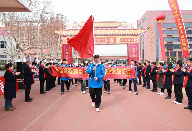 大会伊始,在奋进激情的乐曲声中,学院党委书记、院长杜建忠带领各位领导和任课教师列队齐整、夹道欢迎单招毕业班学生依次穿过“龙门”。全场士气高昂、群情振奋,不时爆发出阵阵热烈掌声。