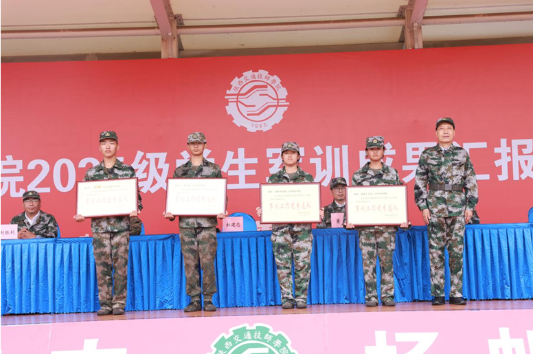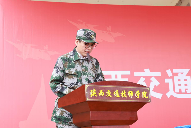 副院长董鹏在讲话中指出,历经12天磨砺,在部队教官的严苛训导与全体师生的同心协力下,本次军训科目及各项新生入学教育专题均圆满落幕,收获了振奋人心的成果。18 位武警教官迎难而上、率先垂范,严标准施训育人,显著提升学生军事素养与技能;12位班主任全程陪伴学子,共经考验,与学生凝聚成紧密集体。同学们则以晒黑的肤色诠释成长,以昂扬的精神展现风貌,用整齐的步伐、饱满的斗志,向学校递交了一份亮眼的青春答卷。希望同学们将军训中淬炼的优良作风、坚韧意志与奋斗精神,融入未来的学习生活,精敬于业、乐融于群、追求卓越的陕西交通技师学院人!