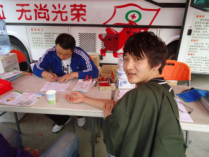 虽然天气有点冷,却掩盖不了同学们献血的热情,在献血现场,无论是长长的队伍,还是拥挤的签到处,再或是络绎不绝的人流,都可以看出同学们对献血的热情。公路与桥梁专业56班学生冯征说:“我刚满18岁,但今年已经献血两次了,也没有多想,就是想献点血,或许还能救一个人的命呢” 。很朴实的话,却饱含深情。从事多年学生管理工作的赵延虎老师说:“我没多想,人之常情嘛,只是想尽自己的一点力,让爱心传递下去”。