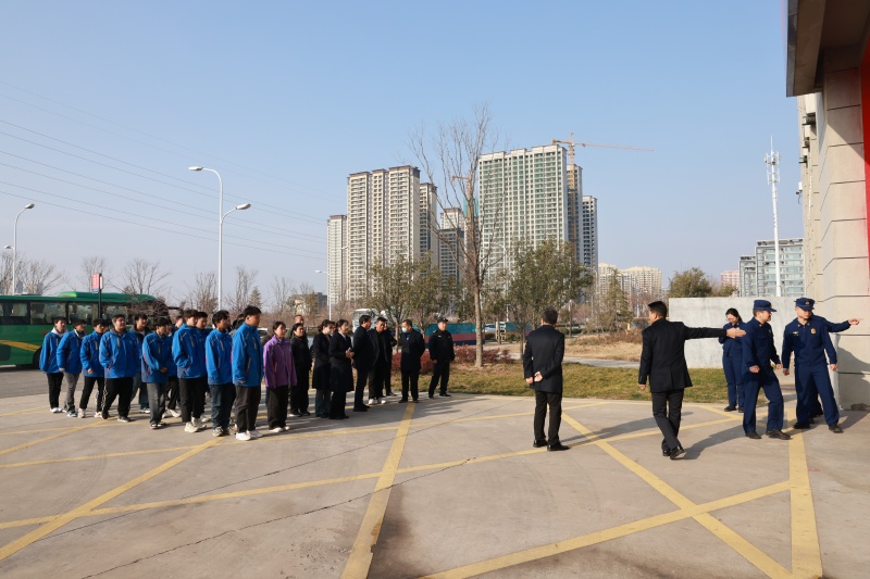 为切实提升师生消防安全意识和应急处置能力,筑牢校园安全防护屏障,2026 年 1 月 5 日,陕西交通技师学院受泾河消防救援大队邀请,组织师生及后勤相关人员代表开展 “沉浸式” 观摩学习活动。本次活动由党委委员、副院长杜辉带队,保卫处组织,各部门安全员、班主任、学生代表及后勤处水电班、餐厅、超市工作人,共同参与,近距离感受消防魅力、学习安全技能。