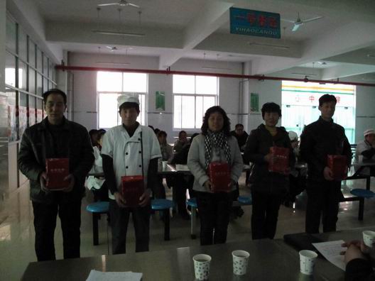 会议由董鹏主持,后勤处张亚茹老师宣读了《关于表彰2011年度后勤处“服务之星”的决定》,杜院长给詹兴仁、刘美灵、王秋玲、王长安、张恩社五位“服务之星”颁发了荣誉证书和奖品。