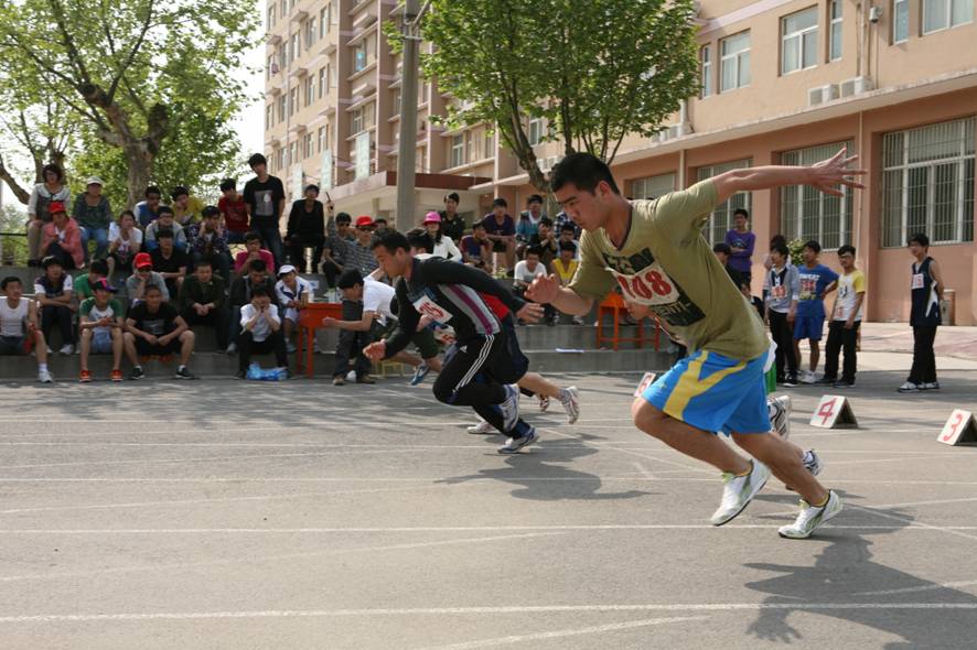 最后工会主席孟祥斌以铿锵有力的声音宣布比赛正式开始。“嘭——”一声枪响伴着飒爽的春风,100米运动员起跑了……笔直的跑道上,健儿在飞奔,似一根根离弦的剑向终点冲去……“加油!加油!”的呐喊声在赛场上激荡……