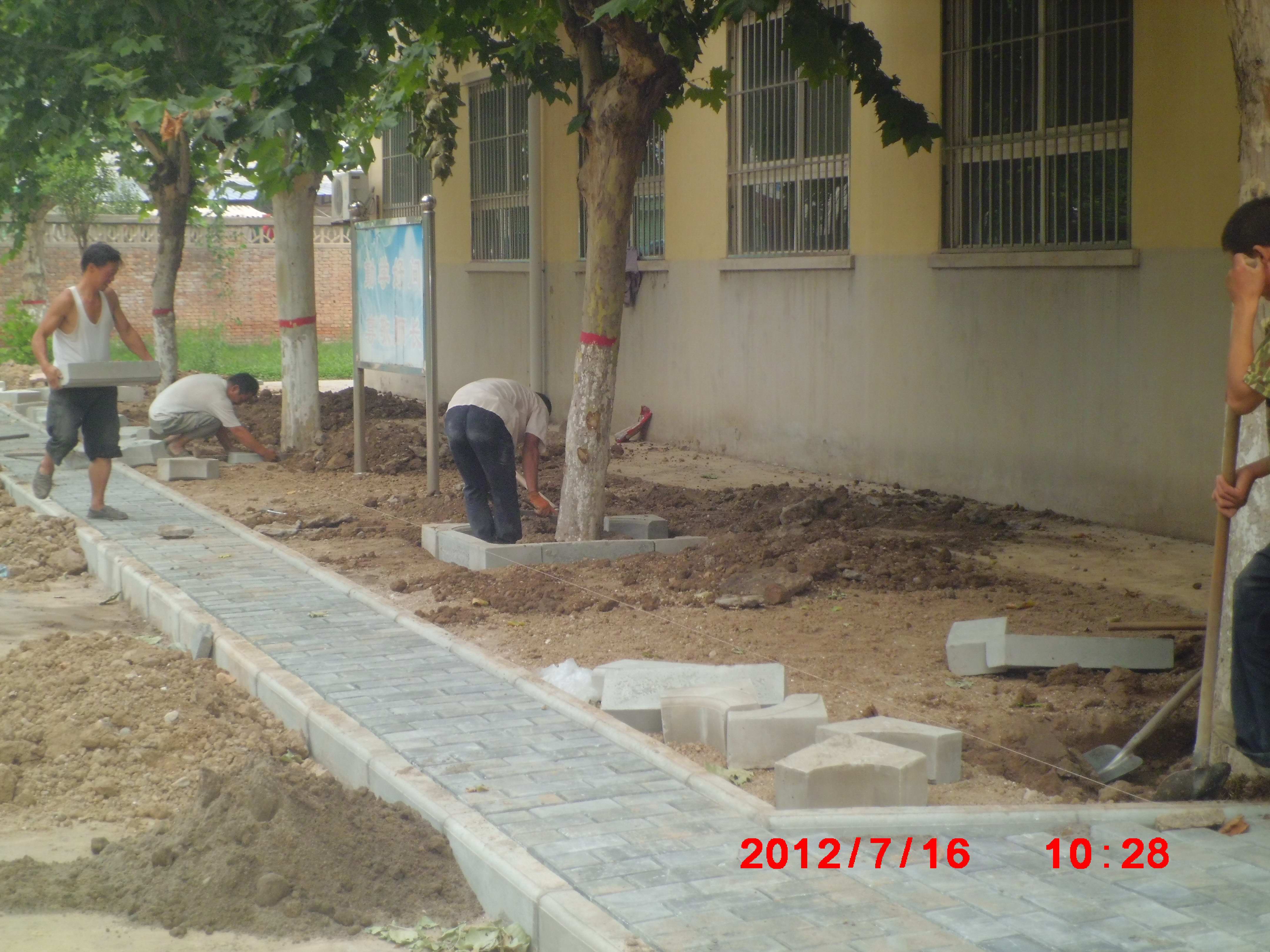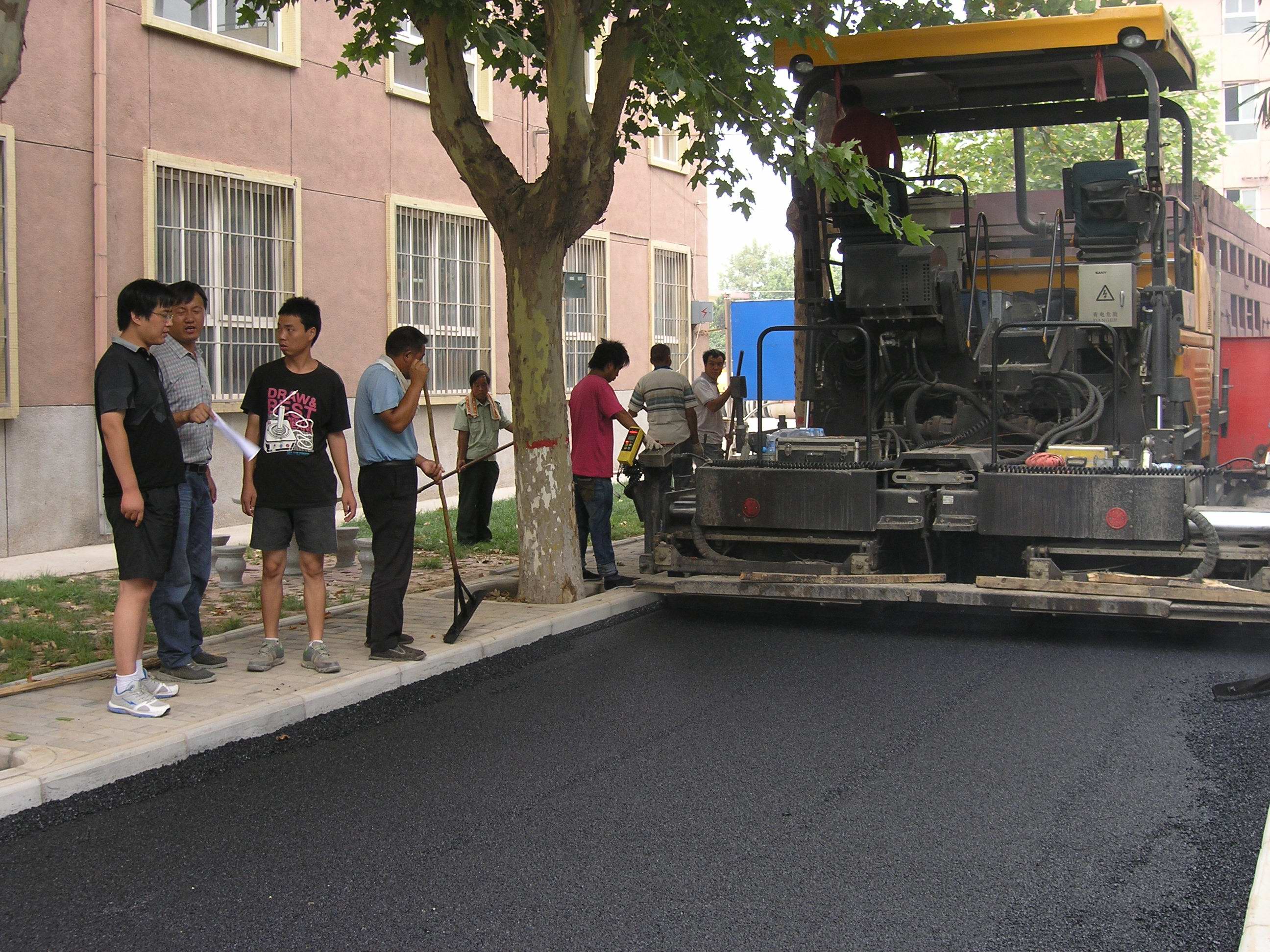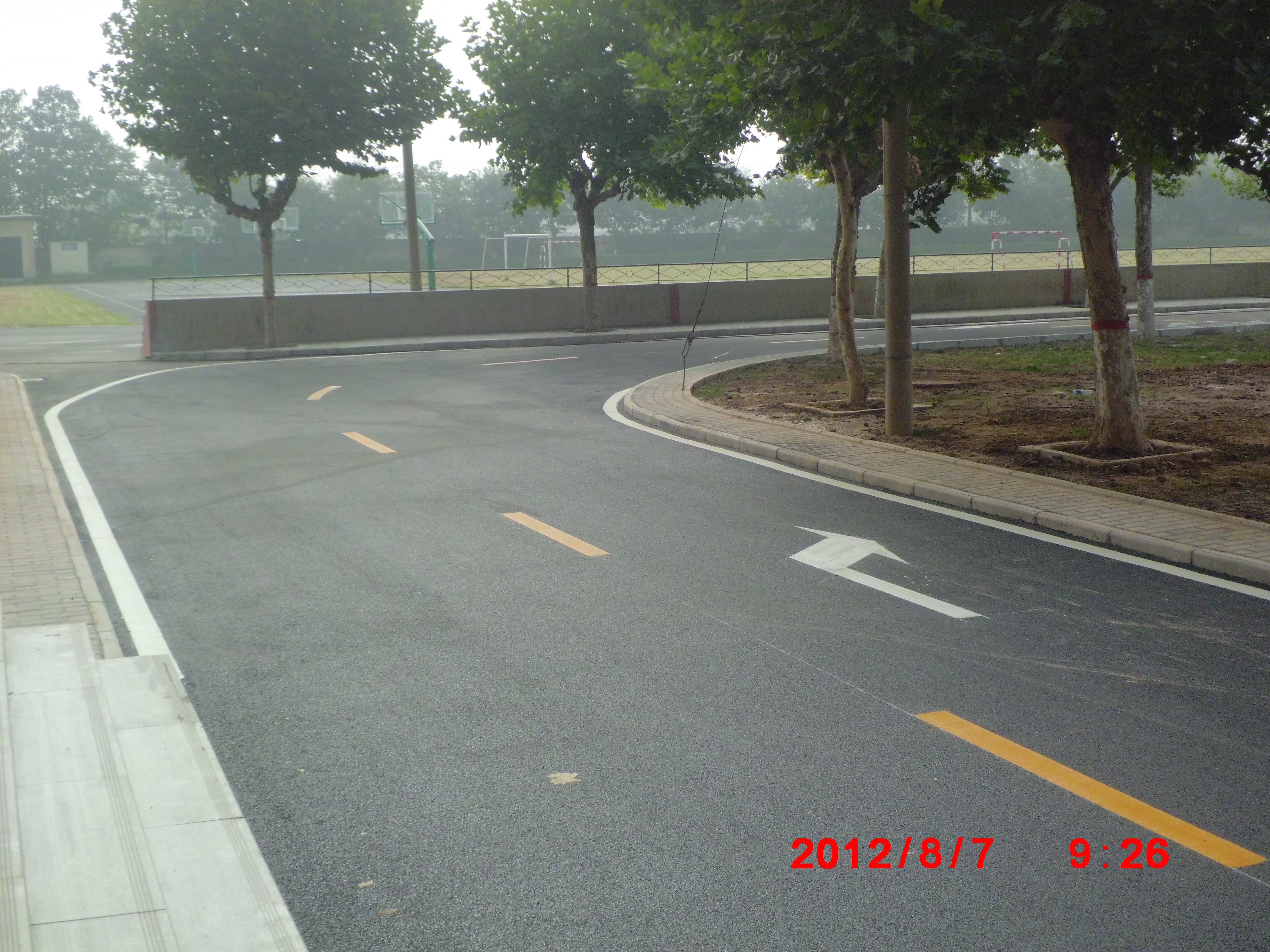 历经一个多月的紧张施工,我院校园道路改造工程已顺利完工,目前已正式投入使用,该项目于2012年7月1日开工,8月4日完工,8月10日进行了竣工验收,该项目为“白+黑”路面改造,在原有混凝土路面上加铺沥青面层,为保证工程质量,本项目采用新工艺方法施工,防止后期裂缝等病害现象发生,道路铺筑沥青面层6500平米,人行道铺装2000平米,草坪绿地铺筑2000平米,景观文化石一座,旗台一座。